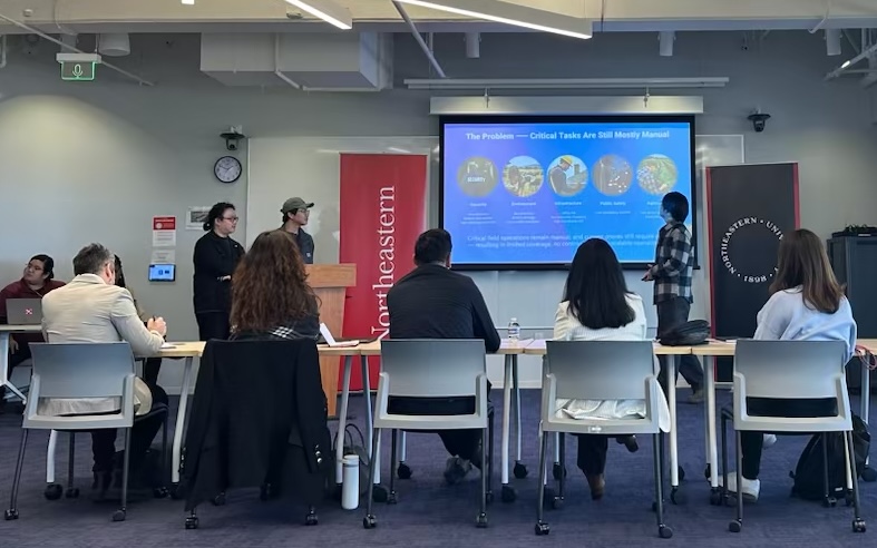 Also volunteering their expertise on the panel of judges were Nao Shibata, venture capital associate at BGV and manager at Marubeni America Corporation; Jerry Zhu, investor associate at Plug and Play Ventures; Jose Sampedro Mazon, MS in Computer Science student, founding researcher and industry partnerships lead with the AI-focused student-faculty group NEURAI Lab, and former principal at Mach49; and Ilmi Yoon, teaching professor and director of computing programs for the Khoury College of Computer Sciences at the Silicon Valley campus.