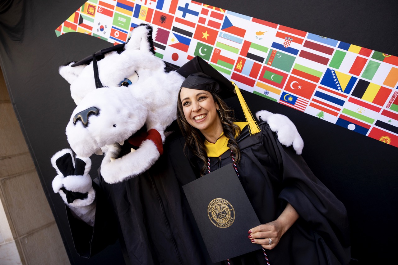 The graduates were each invited to the stage to be formally recognized for their achievements. Senior Vice President of Global Network and Strategic Initiatives Mary Ludden, Vice Provost Meleis, Regional Dean Caroline Simard, Associate Dean Dawn Girardelli, Associate Dean of the Global Engineering Campus (College of Engineering) Stefano Basagni, Senior Associate Dean of the Khoury College of Computer Sciences Alan Mislove, and Associate Dean of the College of Professional Studies Uwe Hohgrawe participated in the conferral of degrees.